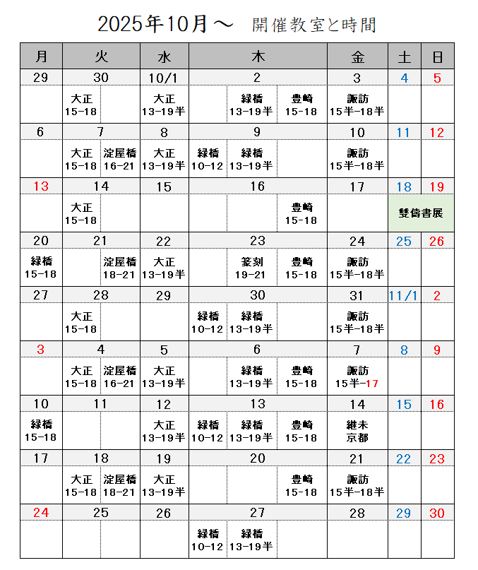 漢字・仮名・ペン字・実用細字・古典臨書・篆刻